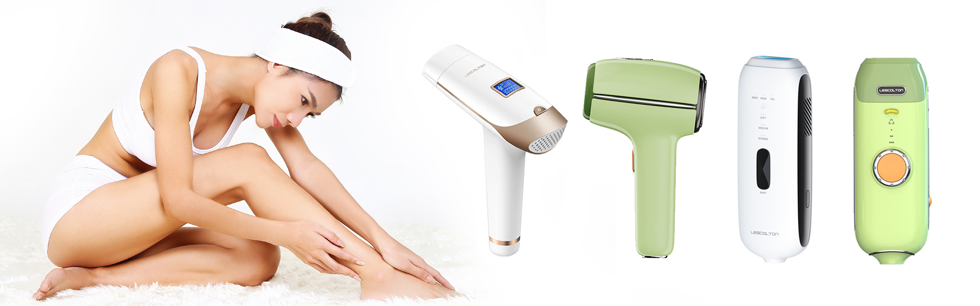 Lescolton hair removal device can fit the body curve for care, bringing a convenient home hair removal experience. The unique arc-shaped intelligent attachment can fit the body curve properly, and different attachments can be selected according to different body parts.