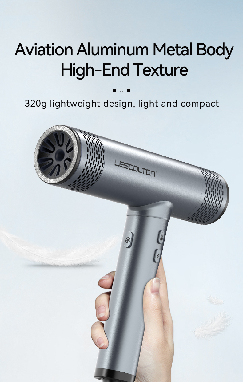 Lightweight and portable, a travel companion – The Lescolton Professional Hair Dryer is crafted from premium metal and weighs only 0.71 pounds (approximately 320 grams), making it easy to hold and use. Its compact design also makes it easy to carry around, allowing for effortless travel.