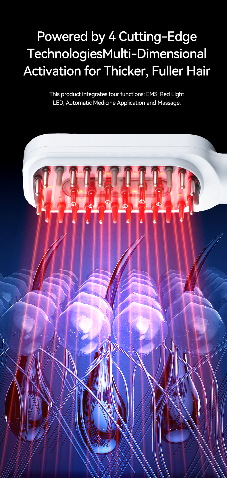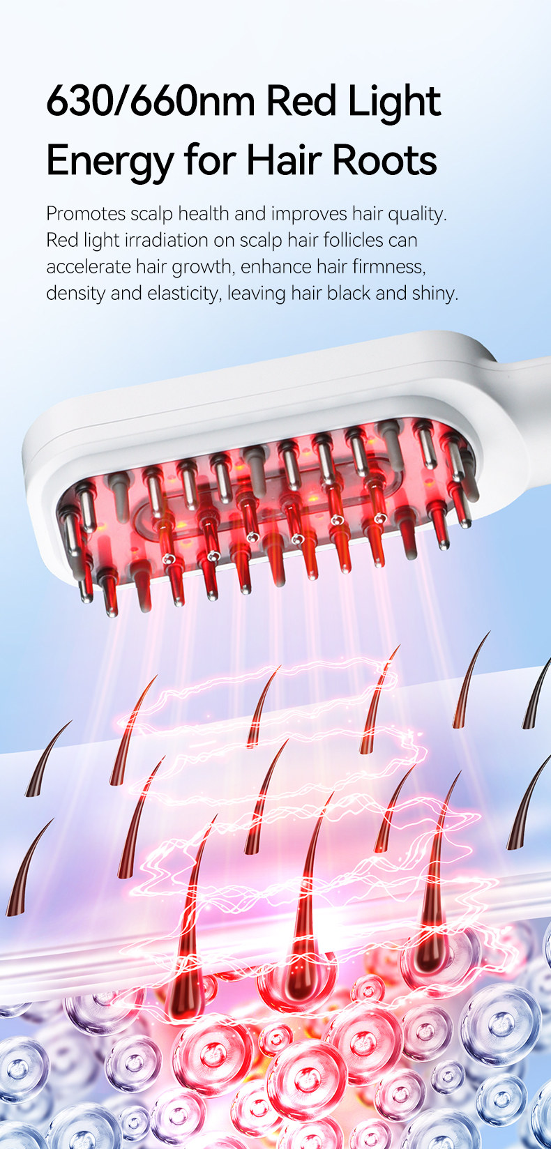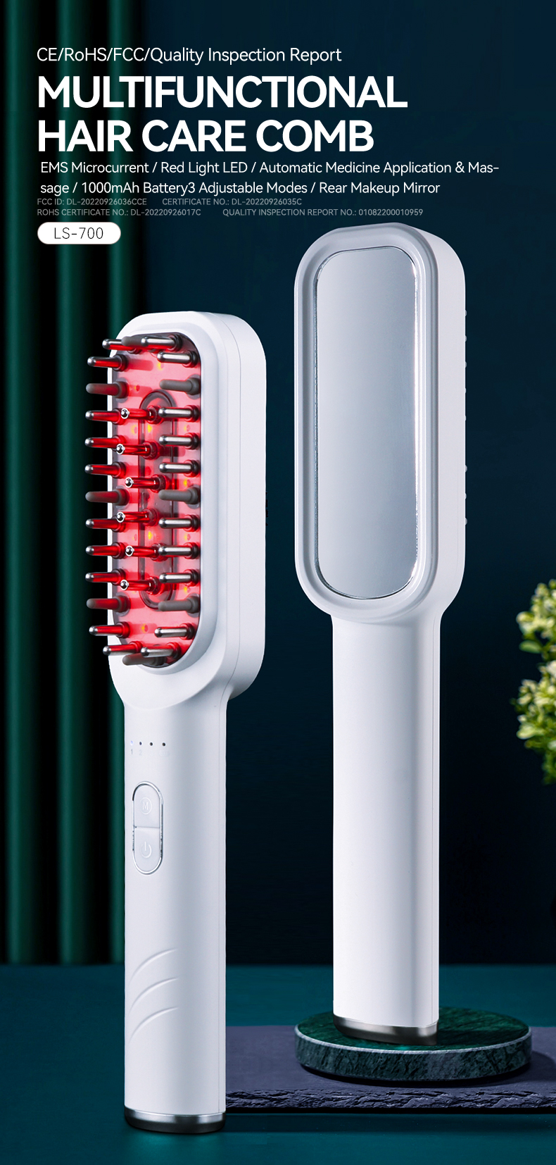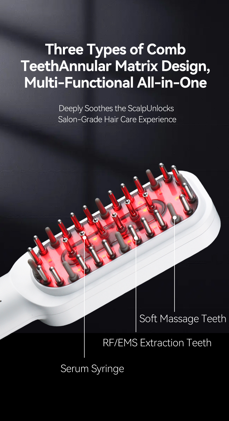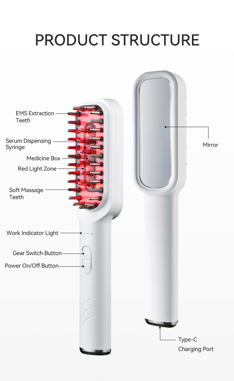 Phototherapy ion hair care comb is veritably simple to watch for hair, apply for drug, spot essential oil painting unevenly, easy to absorb on the crown, good comfort, solves the troubles of tedious hair care and hair loss people, can watch for and maintain hair, remove hair odor, moisturize exclude static electricity and make hair more health, While digging hair, it can comb the crown, anterior muscles, and neck muscles, and ameliorate the blood rotation of the head. It’s a good coadjutor for home and trip hair care.